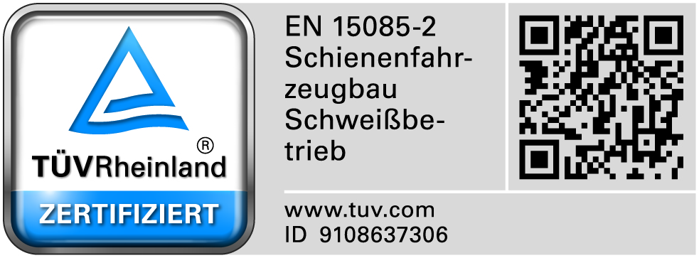 Certipedia - Zertifikat Nr. 0035-CPR-1090-1.01837.TÜVRH.2020.004 Certipedia - Zertifikat Nr. TÜVRh-EN1090-2.01828.2019.003Zertifiziert nach DIN EN 15085: Berechtigung zum Schweißen von Schienenfahrzeugen und deren Drehgestellen